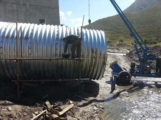 在某些運(yùn)輸不太方便的地方可以直接在涵錒長(zhǎng)度方向進(jìn)行鋼波紋涵管的拼裝。