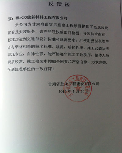 衡水力能新材料工程有限公司主要生產(chǎn)波紋涵管、鍍鋅波紋管涵、隧道加固波紋板等產(chǎn)品,公司創(chuàng)立于2008年,公司位于衡水市濱湖新區(qū)開(kāi)發(fā)區(qū)。公司現(xiàn)注冊(cè)資金一億零五百萬(wàn)元,年設(shè)計(jì)生產(chǎn)能力達(dá)2.5億元,成為國(guó)內(nèi)規(guī)模較大的波紋涵管,防護(hù)網(wǎng)生產(chǎn)企業(yè)。 公司自創(chuàng)建以來(lái)就堅(jiān)持人為本、夯實(shí)質(zhì)量、持續(xù)發(fā)展、顧客滿(mǎn)意”的質(zhì)量方針,建立了科學(xué)完善的質(zhì)量管理與保證體系,F(xiàn)已形成以鋼波...