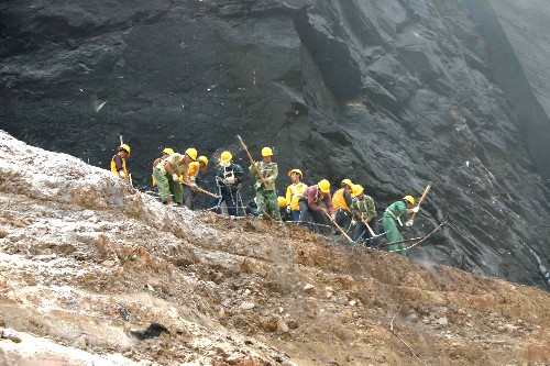 當日,來(lái)自西安鐵路局略陽(yáng)段的30余名鐵路職工開(kāi)始排除因地震造成塌方的寶成鐵路109隧道南口山體上的危石,并安裝柔性主動(dòng)防護網(wǎng),力爭使寶成鐵路早日恢復運行通車(chē)。 新華社記者都紅剛攝